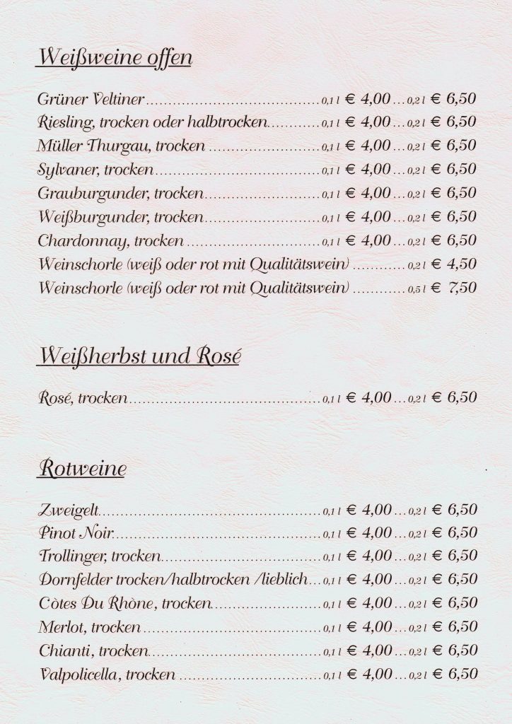 Auf dieser Seite finden Sie eine kleine Auswahl von unserem Cocktail-, Wein- und Getränkeangebot.